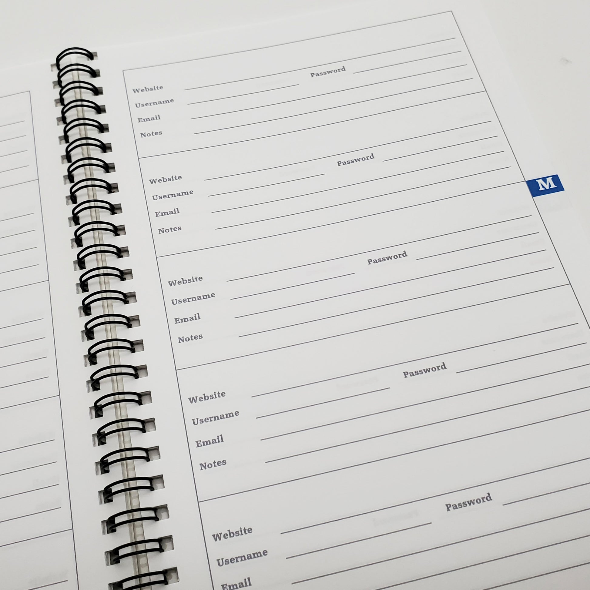 The Password Organizer is the perfect notebook in which to store all of your passwords and login information neatly and simply! This organizer is arranged alphabetically (A-Z) and will hold up to 540 websites and passwords, wifi network passwords, and notes. Entries are alphabetized for ease of searching for and finding information quickly and easily.